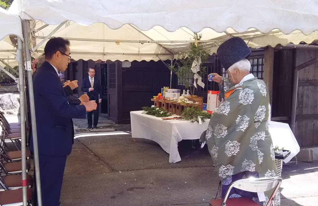 4月29日には、まだ雪の残る野麦峠、お助け小屋前にて、高山市、松本市合同で、両市の関係者の皆様にお越しいただき、安全祈願祭が行われました。